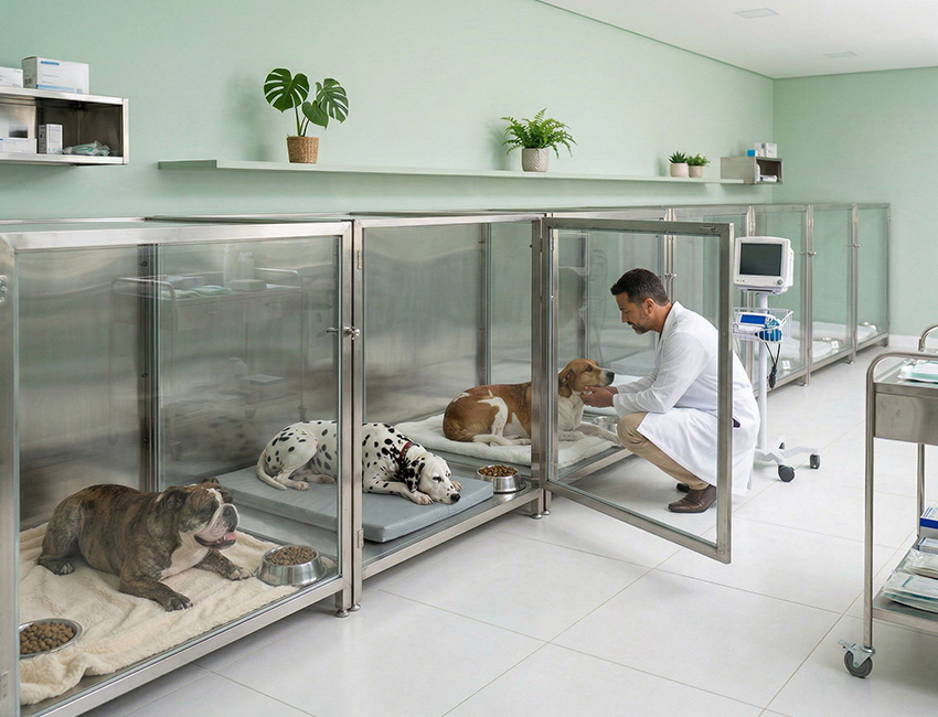 - Internação por Espécie e Necessidade: Áreas separadas para cães e gatos